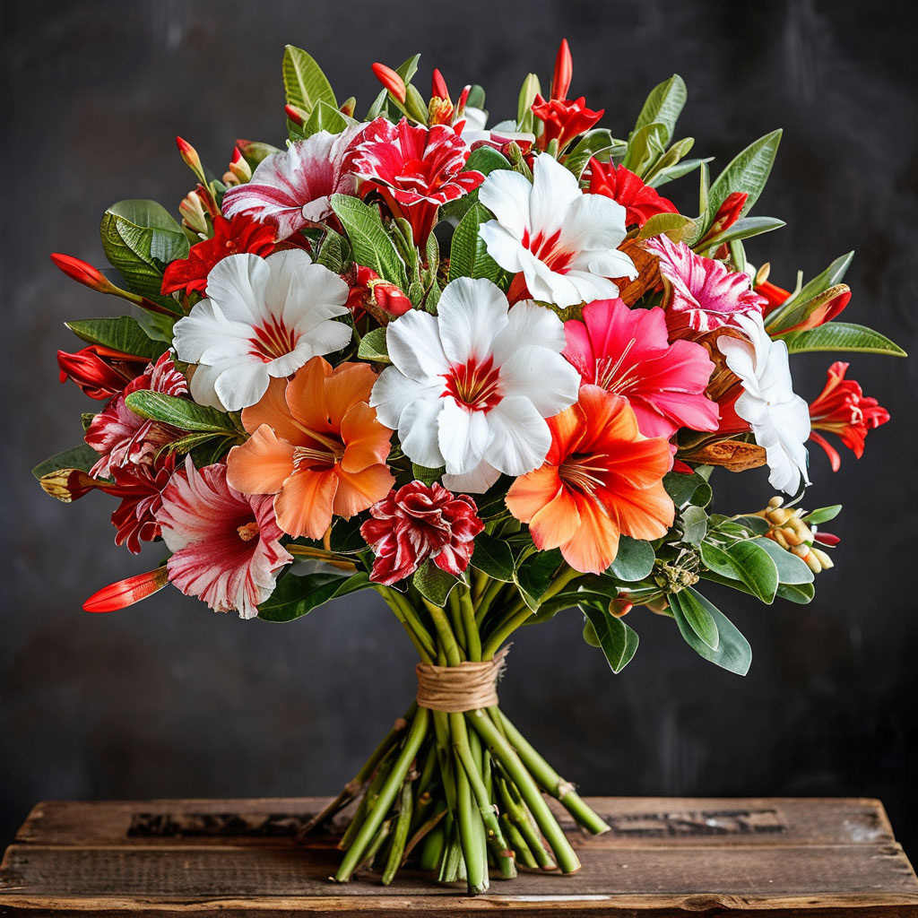 Листья адениума, словно знамена, развеваются на ветру, напоминая о победах и утрат, о тех, кто не увидел мирного неба. Каждый шёпот этих листьев несёт в себе горечь потерь и одновременно гордость за достигнутую свободу. Цветы этого растения, яркие и стойкие, словно фейерверки, освещают небо в день праздника, олицетворяя радость и надежду на будущее.