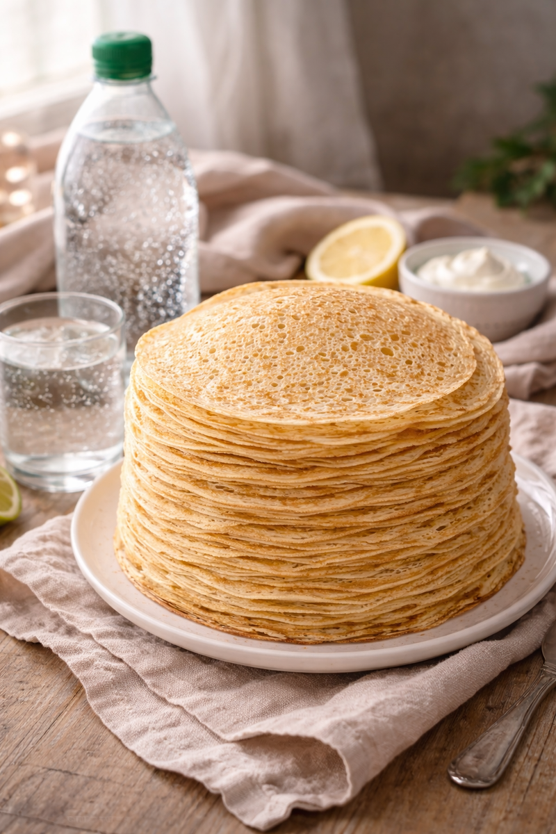 Эти вкусные и тонкие блины, приготовленные на газированной минералке, придутся по душе любителям как сладких, так и соленых начинок. Они легкие, диетические и обладают удивительной эластичностью, что делает их идеальными для фаршировки и заморозки.