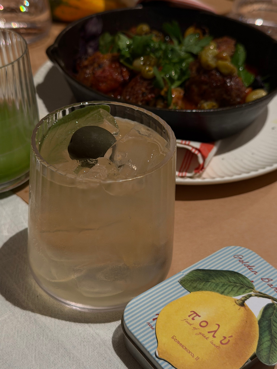 - Лимонад с оливковым рассолом и кордиалом из базилика и огурца. Нежно-солоноватый и свежий, он добавляет осмысленной легкости вечеру.