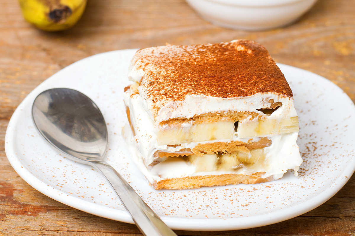 - Торт с печеньем и бананами: Для этого вам понадобятся 300 г сахарного печенья, 2 банана, 300 г сметаны (25%), 2 ст. ложки какао-порошка и 100 мл крепкого чая или молока. Всего 30 минут и 246 кКал.