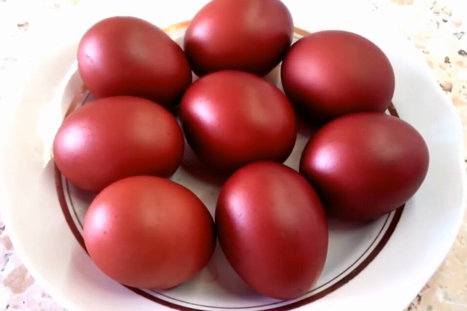 Этот старинный способ окраски, сохранённый ещё с бабушкиных времён, не только безопасен, но и экологичен. Яйца, окрашенные в луковой шелухе, не оставляют следов на руках, а получившийся отвар надолго сохраняет свой цвет. Если же при варке скорлупа треснет, ничего страшного — такие яйца можно использовать для различных блюд, например, в салатах или окрошке.