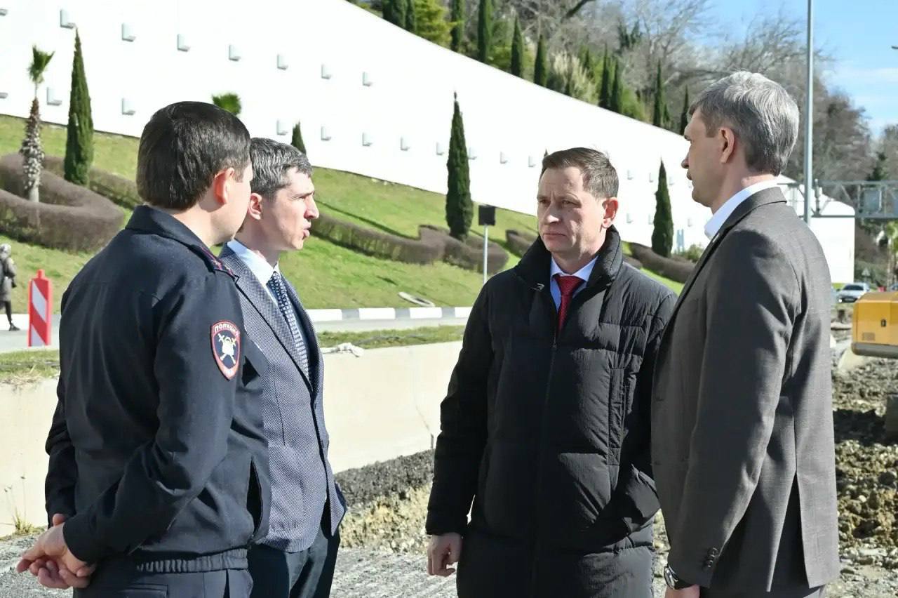 Во время рабочего объезда Хостинского района оценил, как идут работы на участке трассы А-147 в районе «Спутника». Из-за обильных дождей и постоянной нагрузки от интенсивного движения автотранспорта и поездов рядом дорожное полотно здесь деформировалось. Образовалась трещина, которая создавала угрозу безопасности для жителей и гостей Сочи. Чтобы остановить разрушение и укрепить грунт, специалисты Упрдор «Черноморье» уже установили порядка 130 буронабивных и анкерных свай.