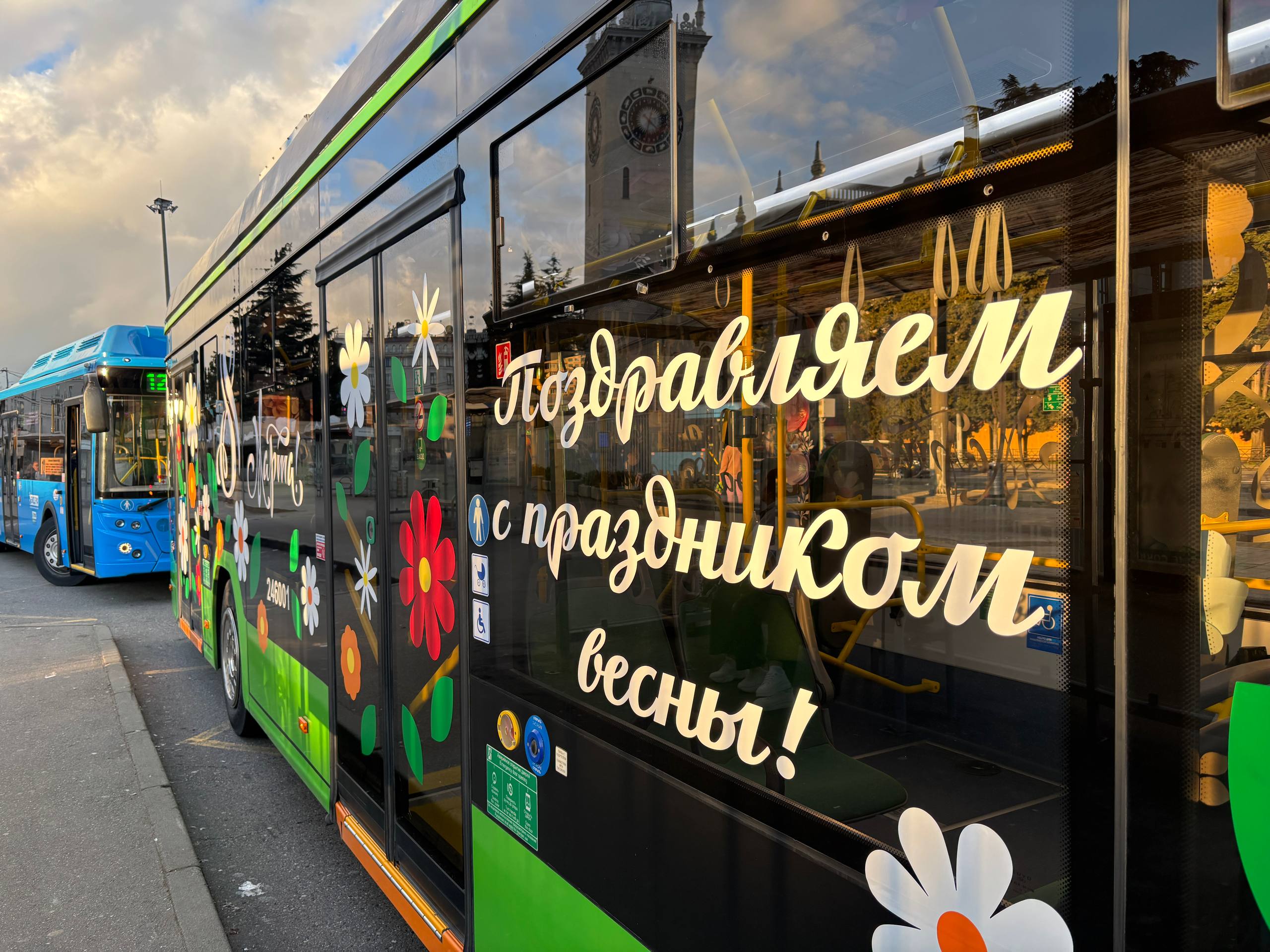 А праздничное аудио-поздравление в городских автобусах и поздравления на маршрутном табло электробуса будут работать только сегодня, 8 марта. Успейте сфотографироваться и послушать поздравление!