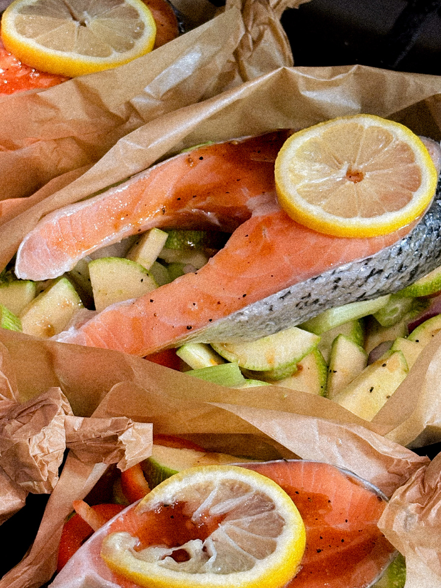 Устали от суеты после длинного рабочего дня? Ужин в стиле «но-стресс» может стать вашим спасением! Представляем вам простой и аппетитный рецепт: стейки лосося, запеченные с хрустящими овощами в духовке. Идея в том, чтобы минимизировать уборку, так как всё готовится в пергаментных лодочках — никаких лишних посуды!
