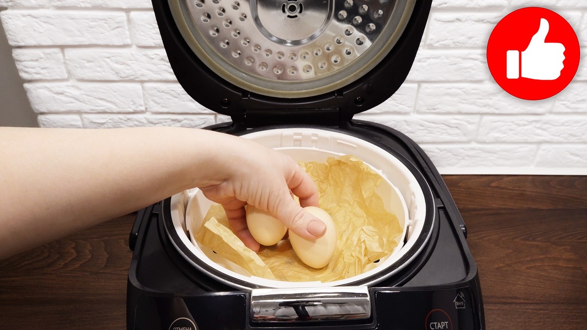 2. В параллельной корзине разместить яйца. Включить режим «Рис/Крупы» и готовить 35 минут.