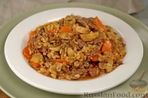 - Рис с фаршем и шампиньонами: сочетание ароматного фарша с овощами и рисом делает это блюдо не только сытным, но и очень привлекательным по вкусу. Приправа с черным перцем и паприкой придаст блюду особую пикантность.