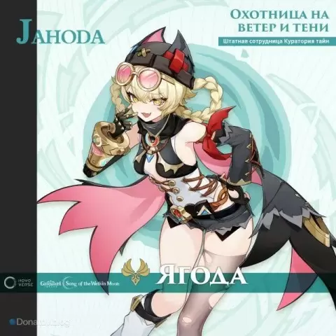 Ягода — четырёхзвёздочный персонаж, обладающий Анемо Глазом Бога. Интересно, что она возникла одновременно с другим новым персонажем, Дурином, и два этих героя скорее всего появятся в одном баннере. Ягода представляется как незаменимый помощник Нефер в Куратории тайн, и к её способностям у игроков возникли множество вопросов. Несмотря на её порой неуклюжий характер, Нефер утверждает, что у Ягоды есть потенциал стать истинной звездой, способной помочь в самых сложных ситуациях.