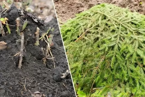 Второй полезный способ — использование хвойного лапника. Ветки хвойных деревьев можно укладывать вокруг растений, создавая естественный барьер от холода. Это не только эффективно, но и эстетично. Хвойный лапник сохранит снежный покров, который дополнительно защитит растения. Подходит для таких как лаванда и гортензии, эта защита не даст морозу добраться до наиболее уязвимых частей растений.