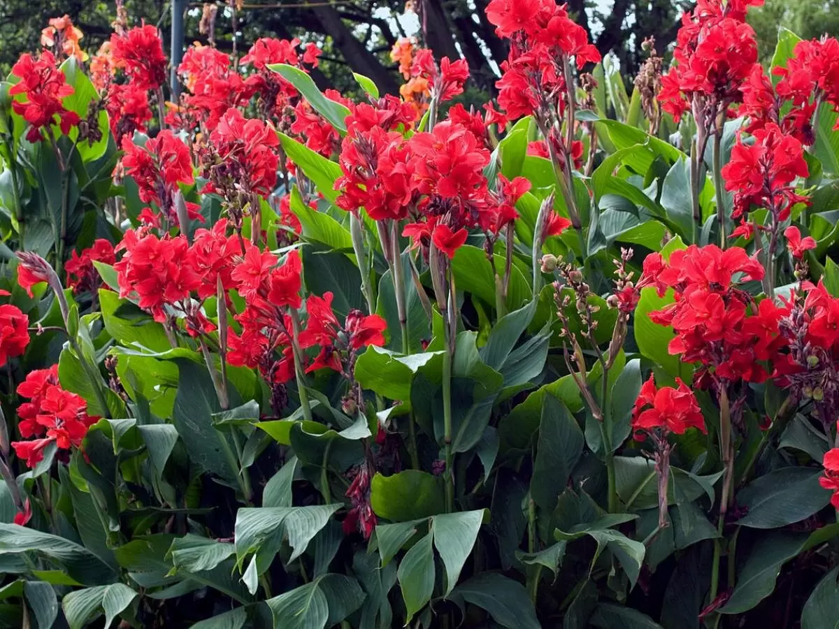 Крупные листья канны обеспечивают визуальное воздействие. Они могут быть зелеными, пестрыми или даже с полосатой окраской, что усиливает эффективность их использования в саду. Клубни располагаются горизонтально и успевают нарастить новые ростки в следующем сезоне, а растение легко переносит перепады температуры при условии надлежащего ухода.