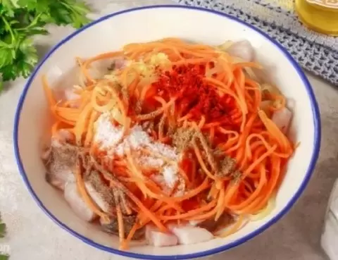 - Моркови: натереть на терке и залить горячим маслом с приправами.