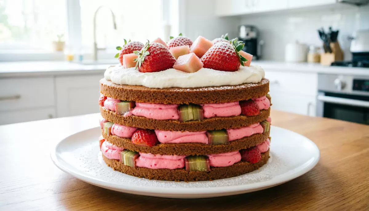 Вершиной этого десерта станет легкий клубничный крем — пушистая масса из сливок, творожного сыра и спелых ягод, которая растекается по языку, вызывая ощущения весеннего счастья. Сочетающий кислинку ревеня и сладость клубники, этот торт идеален для теплых дней, создавая гармонию, которая радует и удивляет.