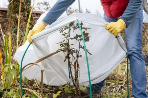 - Розы – хотя множество сортов зимостойки, некоторые, особенно плетистые и чайно-гибридные, обязательно нужно укрывать. Используйте каркас с двуслойным спанбондом и добавьте лапник для лучшей защиты.