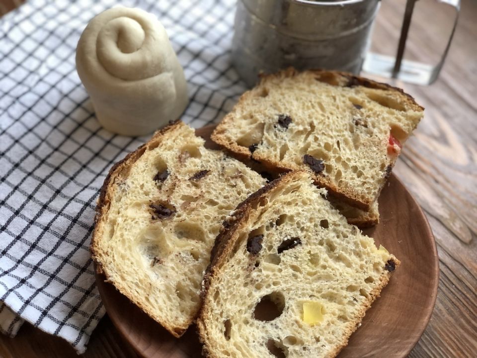 Для начала, отложите часть творожной массы (примерно одну треть) в другую миску и добавьте 30 г мака, смешайте. В оставшуюся массу введите 150 г сухофруктов (изюм, курага, цукаты), предварительно промытых и нарезанных мелкими кусочками.