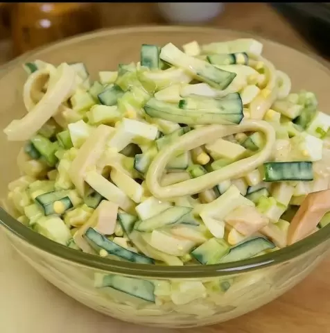 Нежный и аппетитный салат с кальмарами, яйцами и свежими огурцами стал любимым блюдом многих гурманов. Это простое, но очень вкусное лакомство идеально подойдет как для повседневного, так и для праздничного стола.
