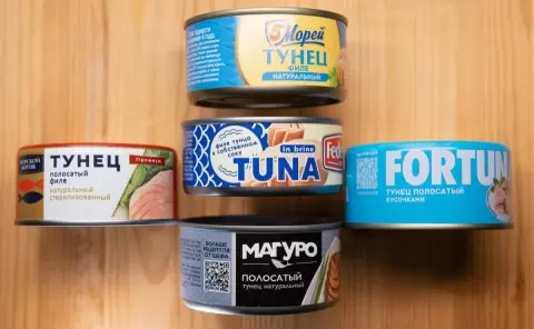 В исследовании приняли участие консервы из полосатого тунца в собственном соку пяти известных марок: