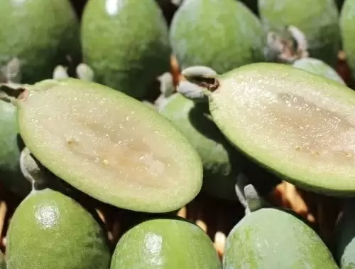 Порезав фейхоа пополам, можно увидеть полупрозрачную желеобразную мякоть, аромат которой может вдохновить на мечты о тропиках. Его вкус напоминает о золотистом солнце и теплоте осени, одетой в летние наряды.