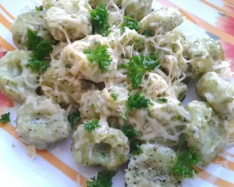 После варки готовые клецки обжариваются на сковороде с растительным и сливочным маслом, что добавляет приятную хрустящую корочку. Блюдо обычно подается с натертым сыром и свежей зеленью, но не стоит забывать и о соусах. Например, песто станет отличным дополнением к цьому кулинарному произведению искусства!