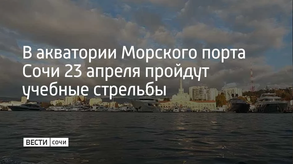 В четверг, 23 апреля, в акватории Морского порта Сочи с 09:00 до 23:00 будут проходить учебные стрельбы. Перед их началом включат голосовое оповещение.