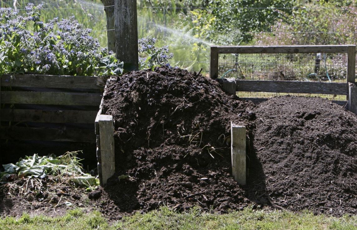 Уход за компостной кучей также включает в себя регулярное увлажнение и переворачивание для доступа кислорода. Начиная с весны, готовый компост будет отличным удобрением для весенних посадок и мульчирования.