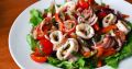 - В глубокой миске смешать кальмары с овощами и зеленью.