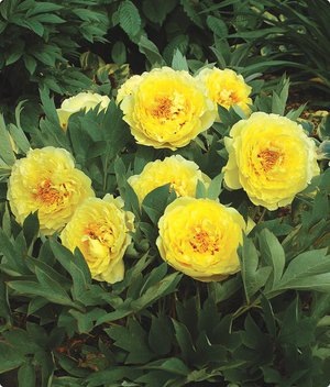 - Цветение: Пионы Бартзелла радуют своей красотой с начала лета, их крупные желтые цветы выглядят просто великолепно.