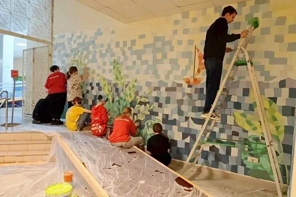 В рамках производственной практики студенты Сочинского института РУДН специальности «Декоративно-прикладное искусство и народные промыслы (по видам)» выполнили на территории санатория «Адлеркурорт» две работы: панно на морскую тематику и изображение кота Ученого.